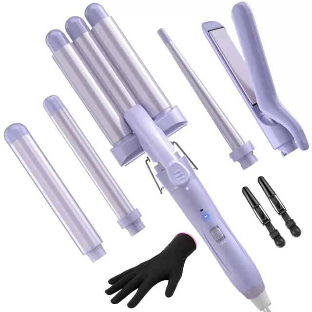 • 5 Styling Tools in 1: Includes a 1″ hair straightener, triple barrel waver, tapered curling wand, and two curling irons (1″ and 1.25″).